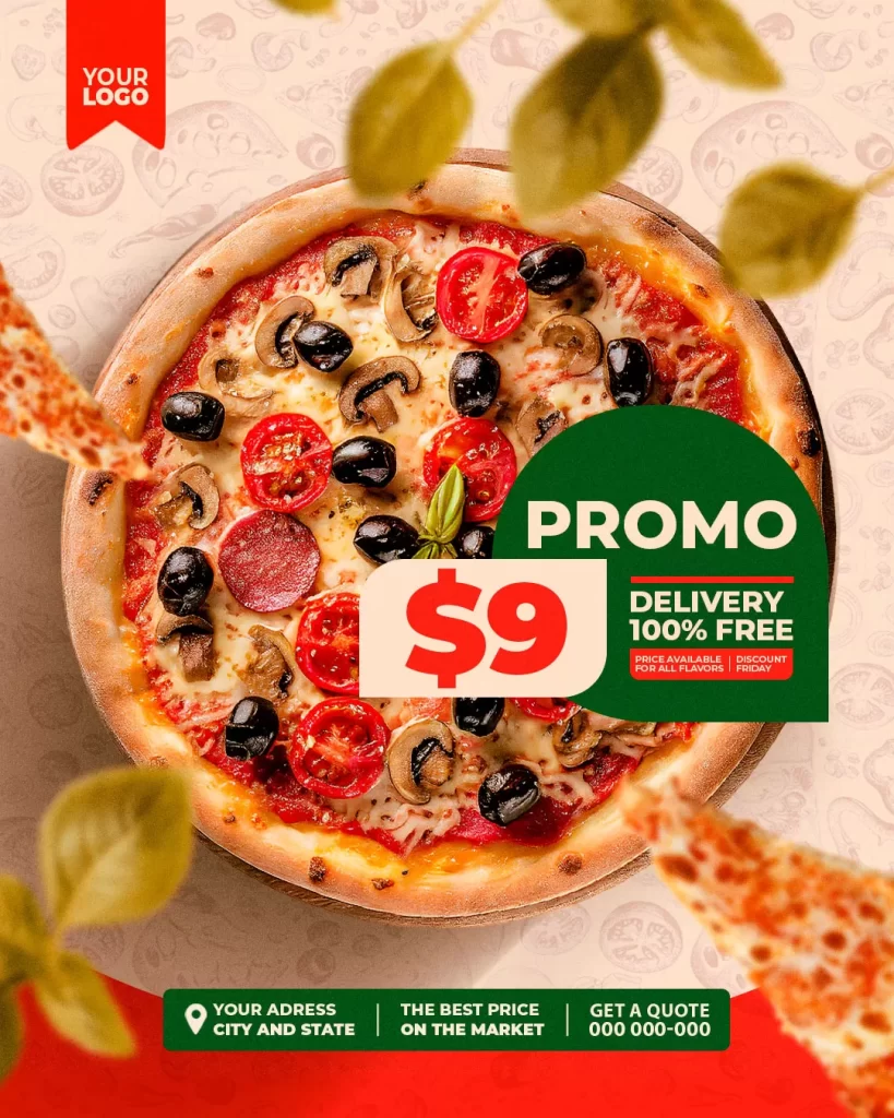 PSD Food menu and delicious pizza flyer banner story