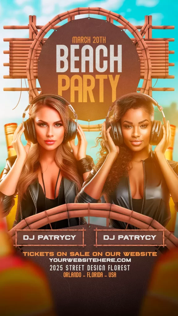 PSD night club dj party sunset and summer story