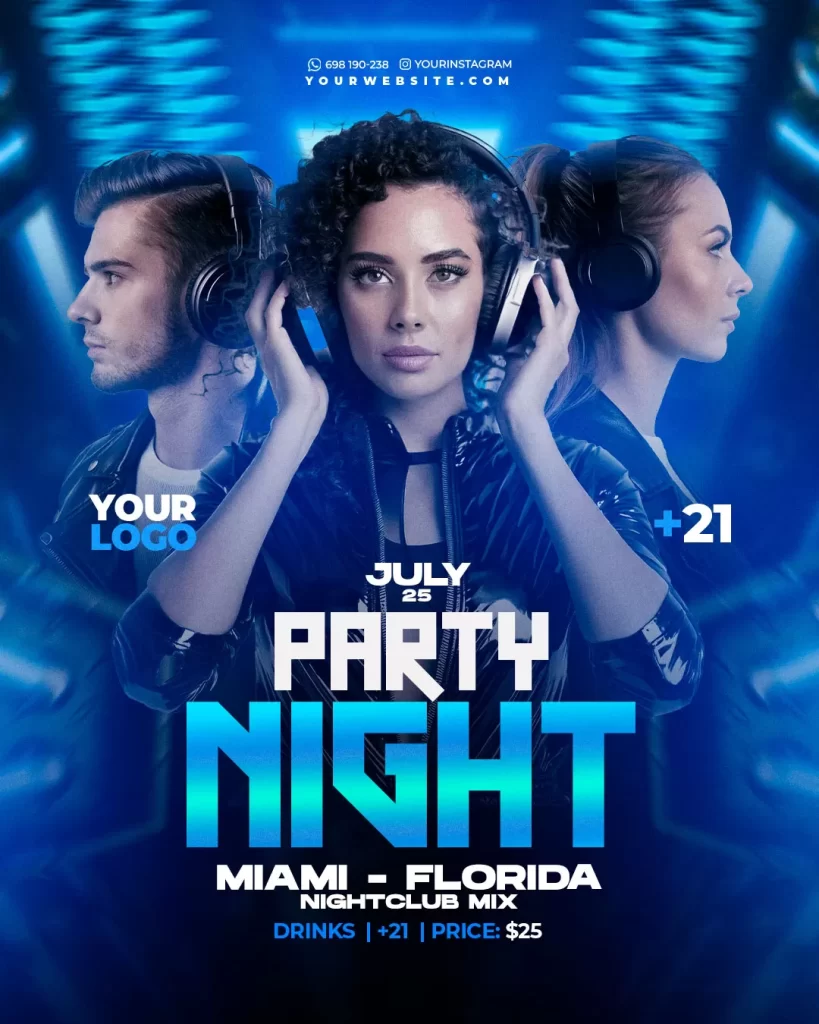 PSD Editable Night Club Dance Party Flyer