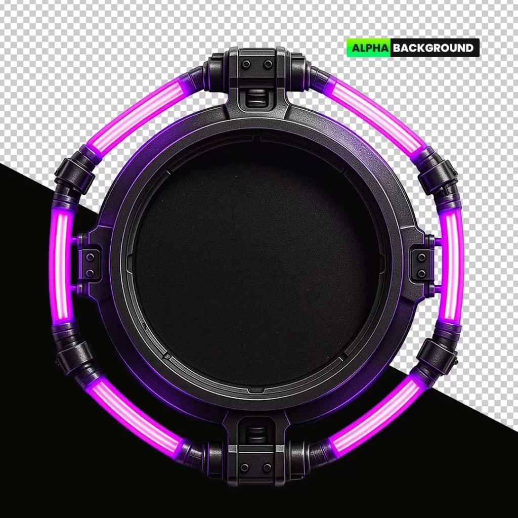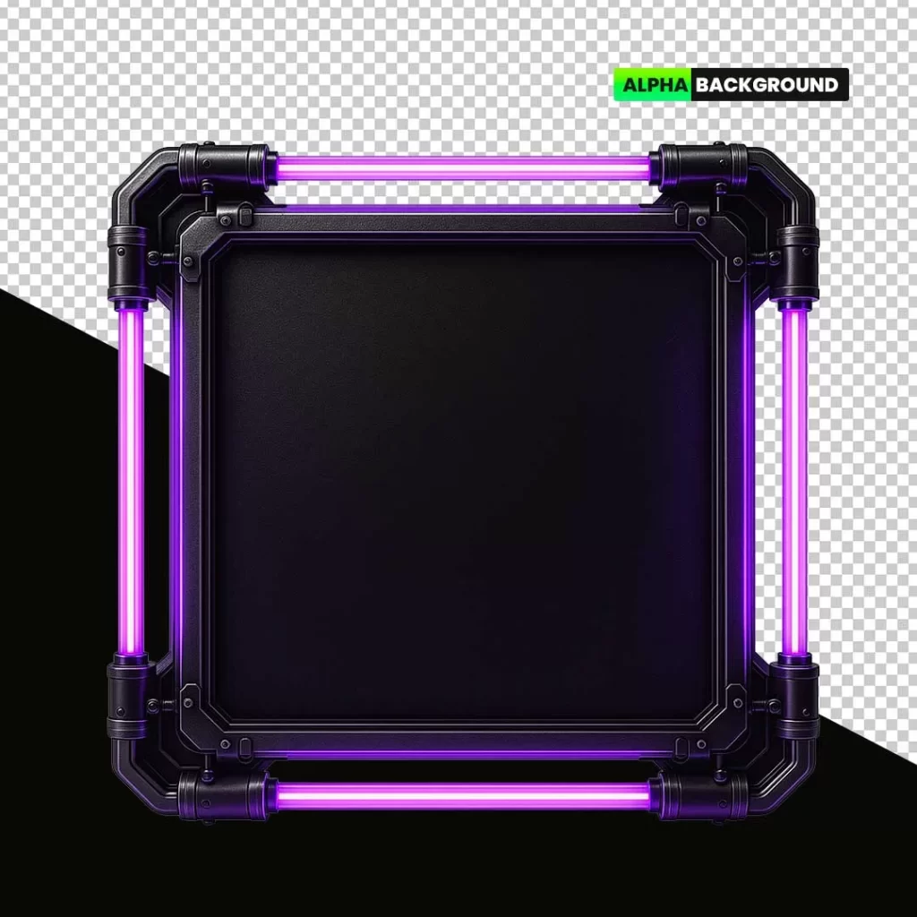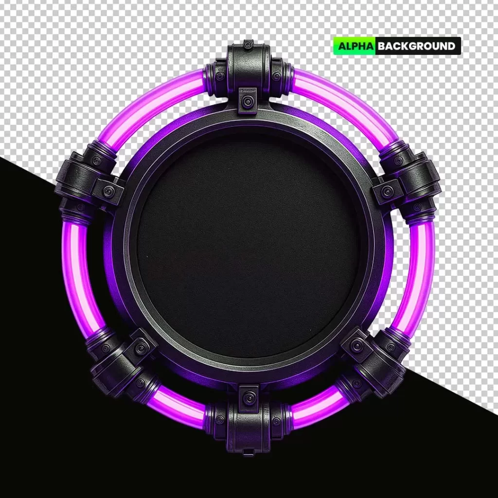 3D Metal Element with Decorative Neon Light – High-Res PNG