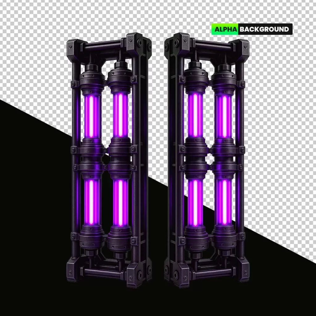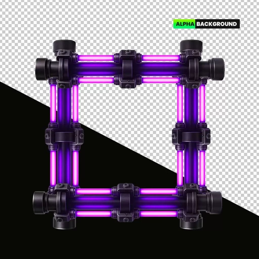 3D Metal Tube Element with Neon Glow – Decorative Overlay