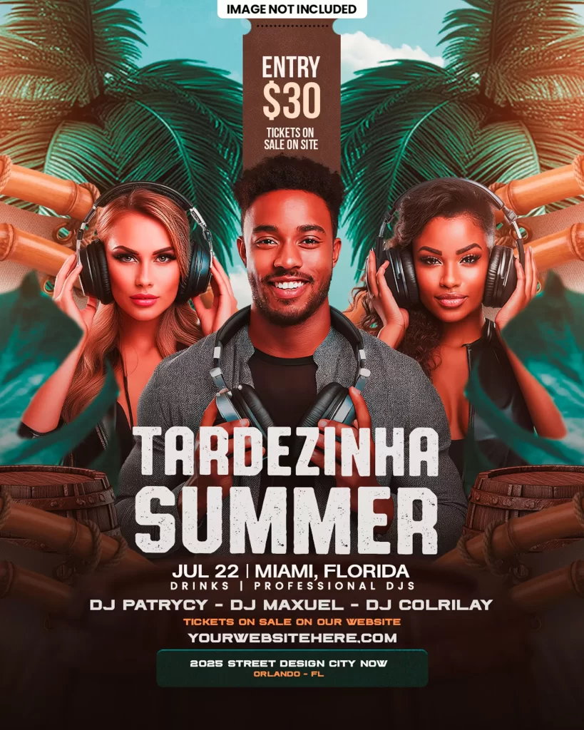 Sunset EDM Party Flyer PSD – Summer Festival Mockup