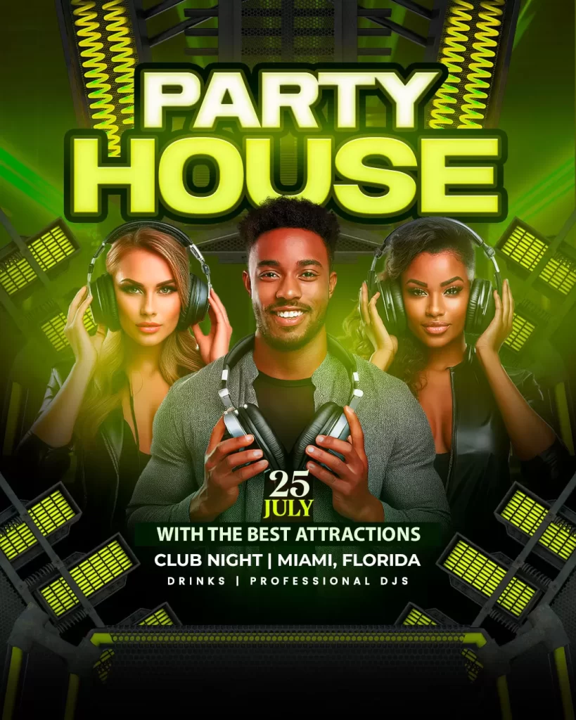 PSD night club party flyer story post neon