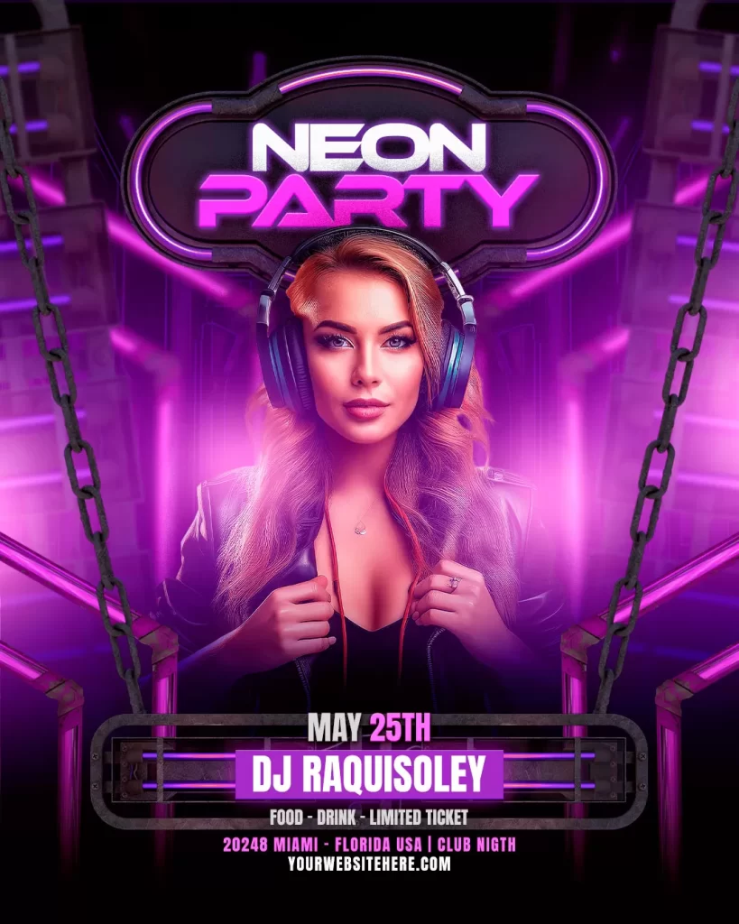 PSD night club party flyer feed post neon