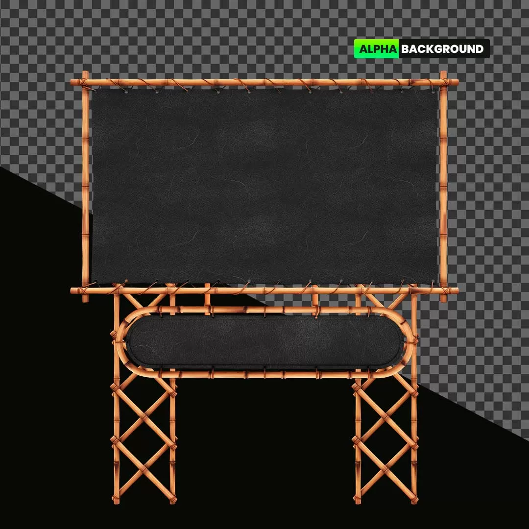 High-Res 3D PNG: Neon Decorative Light & Bamboo Board