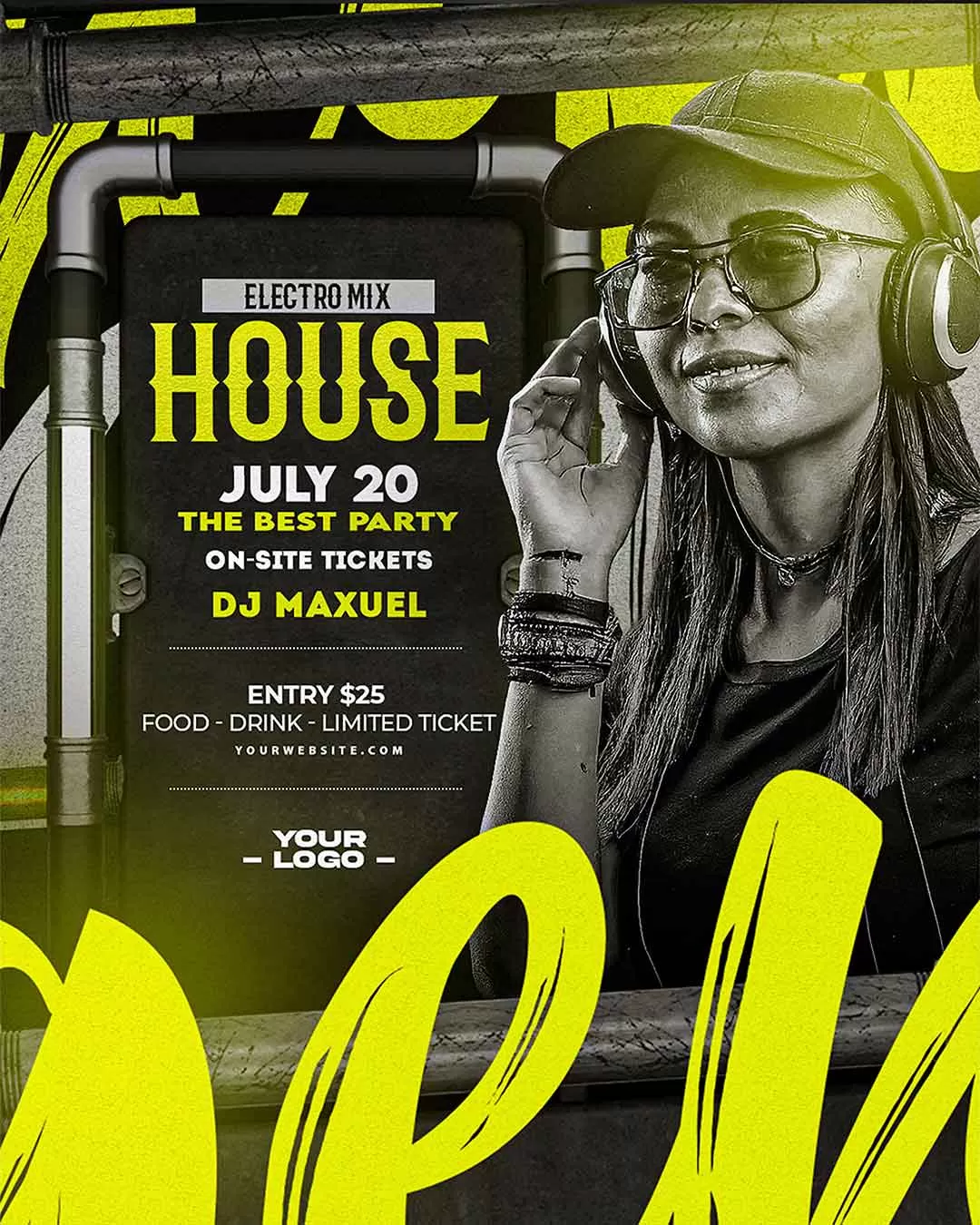 Flyer Night Club Neon Editable Photoshop Story