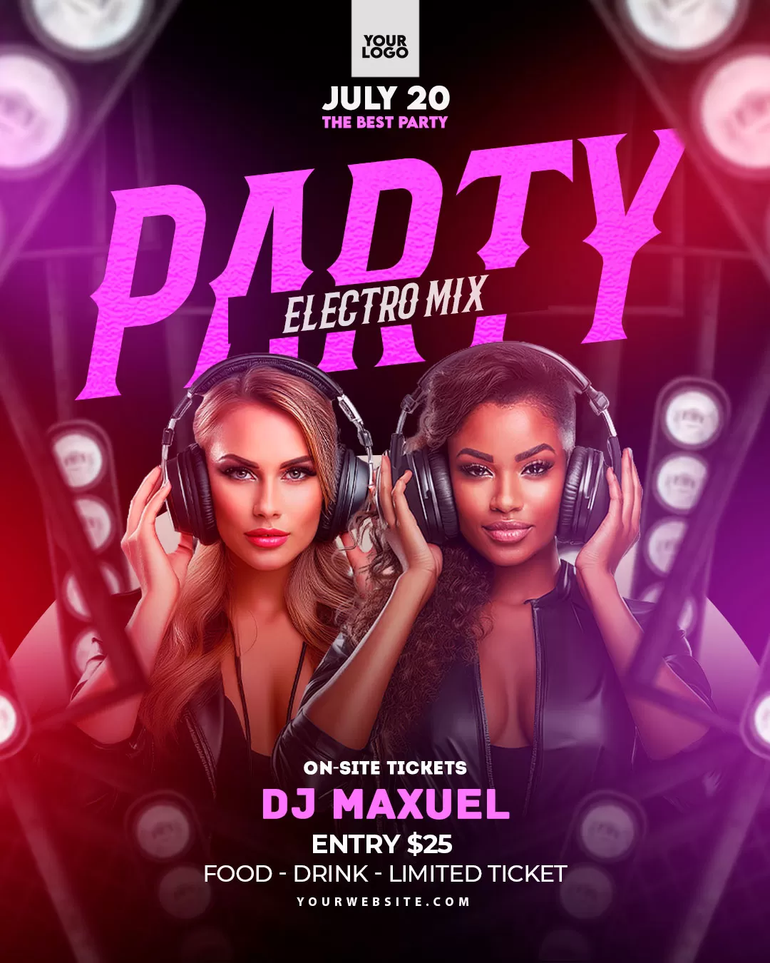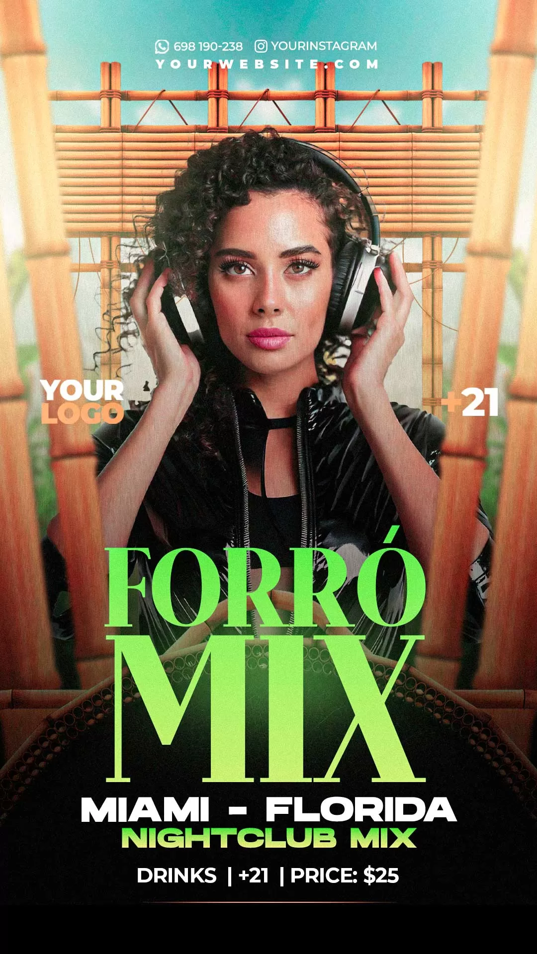 PSD Club Dj party night flyer neon Story