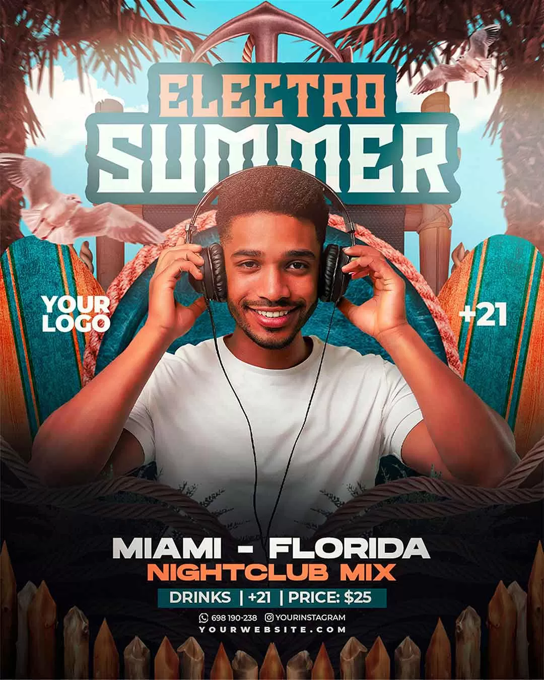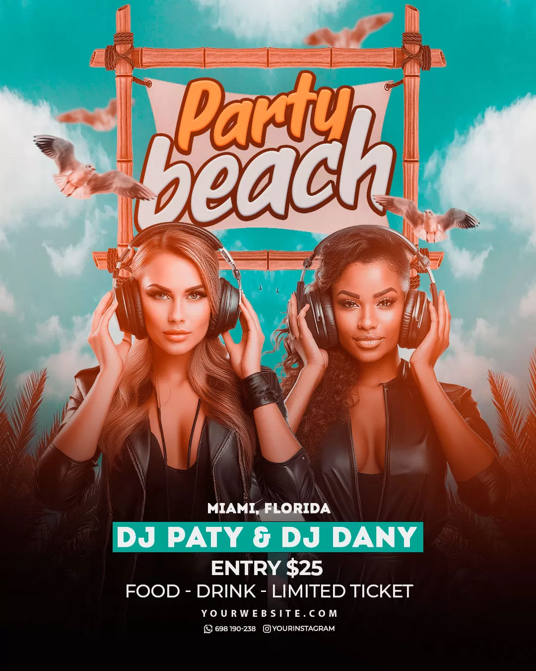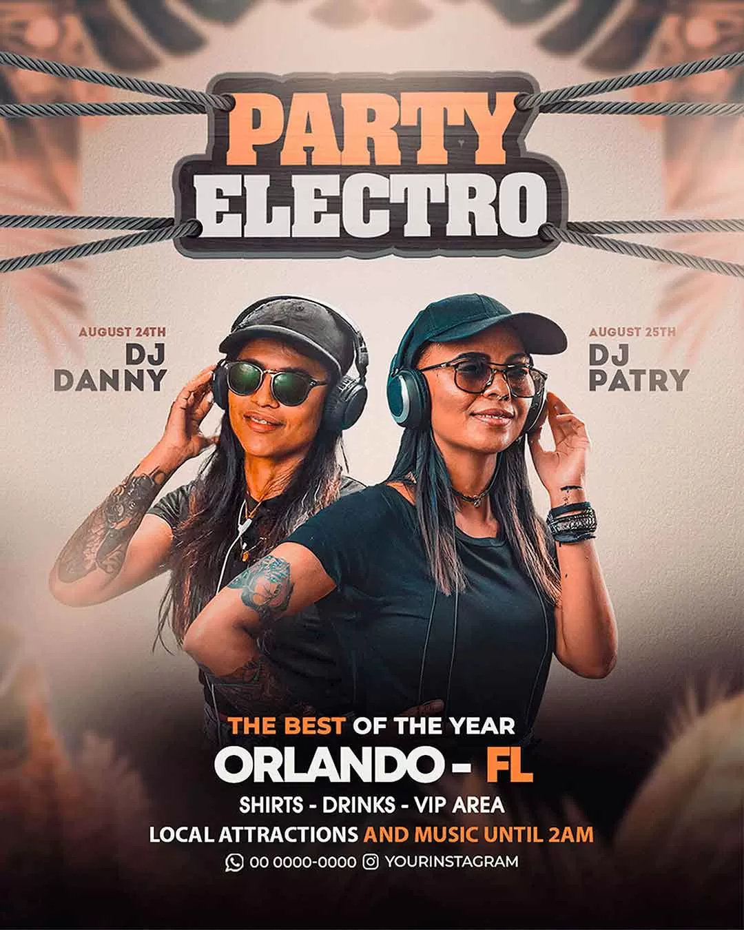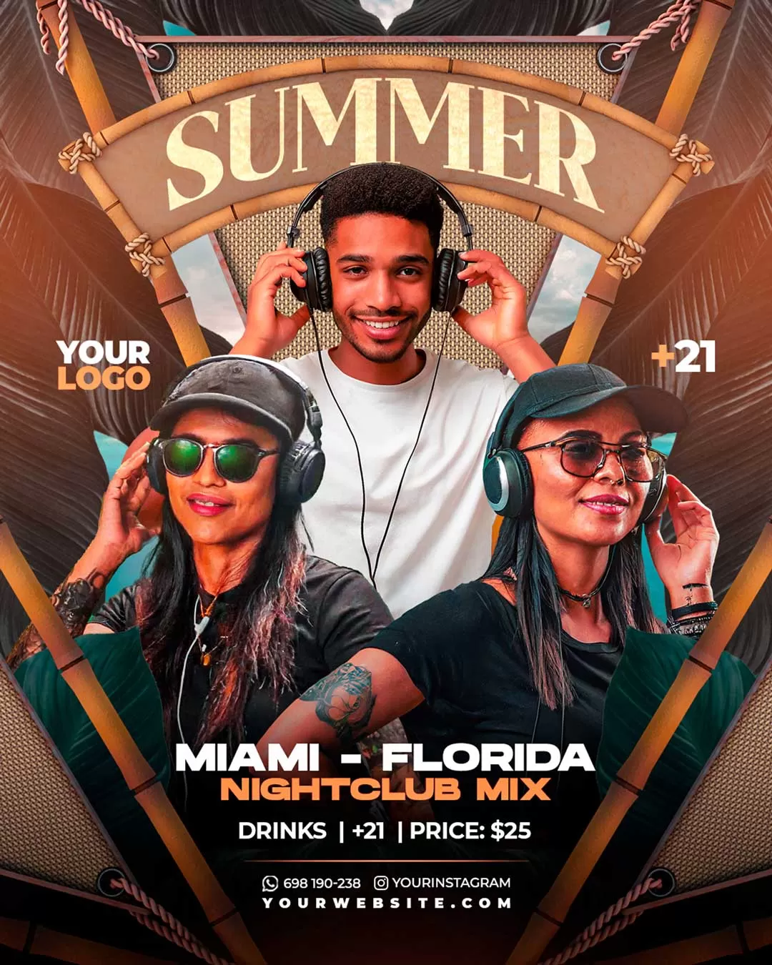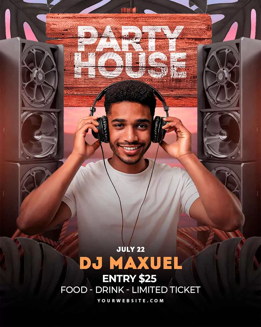 PSD sunset vibe summer artist party flyer template social media banner