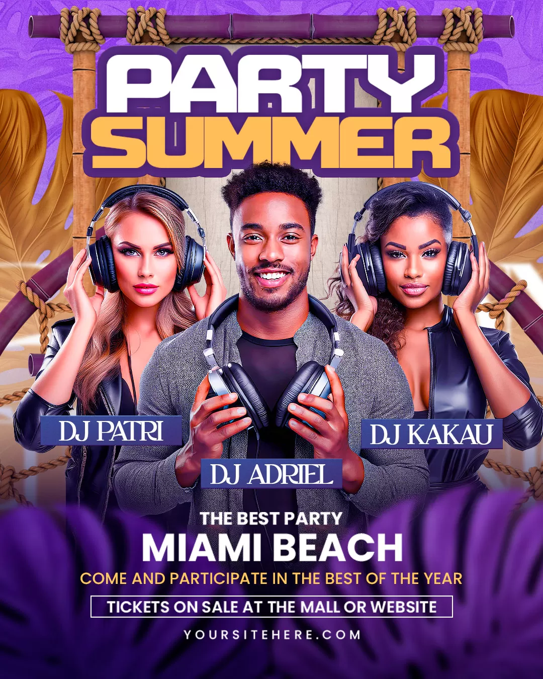 PSD sunset vibe summer artist party flyer template story